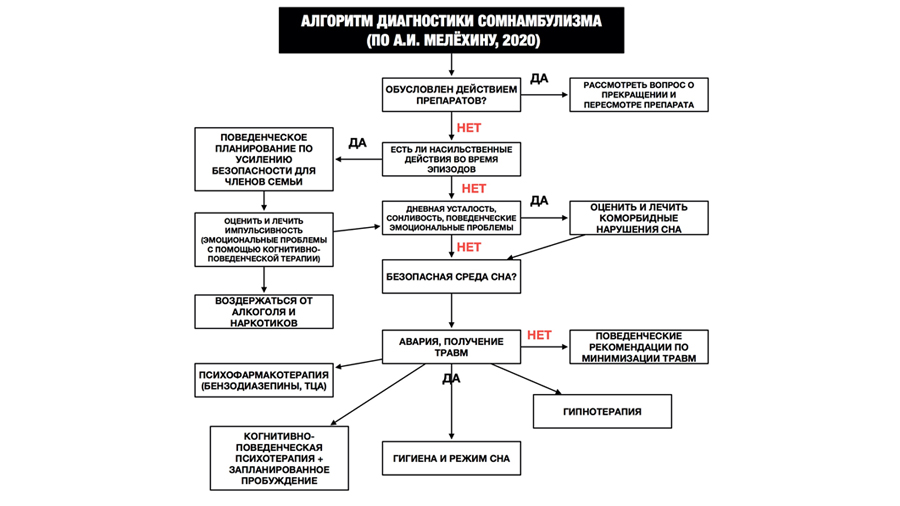 По сей день знания по диагностике все еще находятся в зачаточном состоянии [1;2;5]. На рис. мы приводим алгоритм по оценке сомнамбулизма в клинической практике.